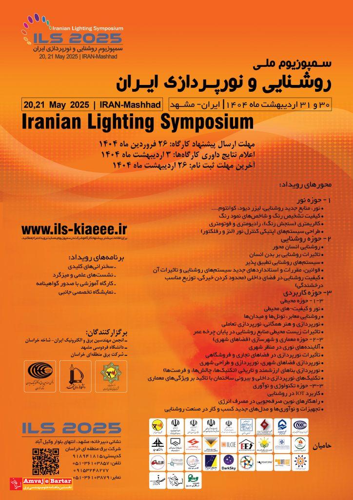 سمپوزیوم ملی روشنایی و نورپردازی ایران در تاریخ ۳۰ و ۳۱ اردیبهشت ماه ۱۴۰۴ در مشهد برگزار میشود.